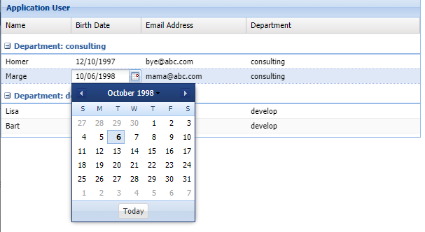 3) 에디터 필드로 Ext.form.field 패키지의 모든 클래스 사용 가능 / 아래와 같이 Date 에디터 사용 가능